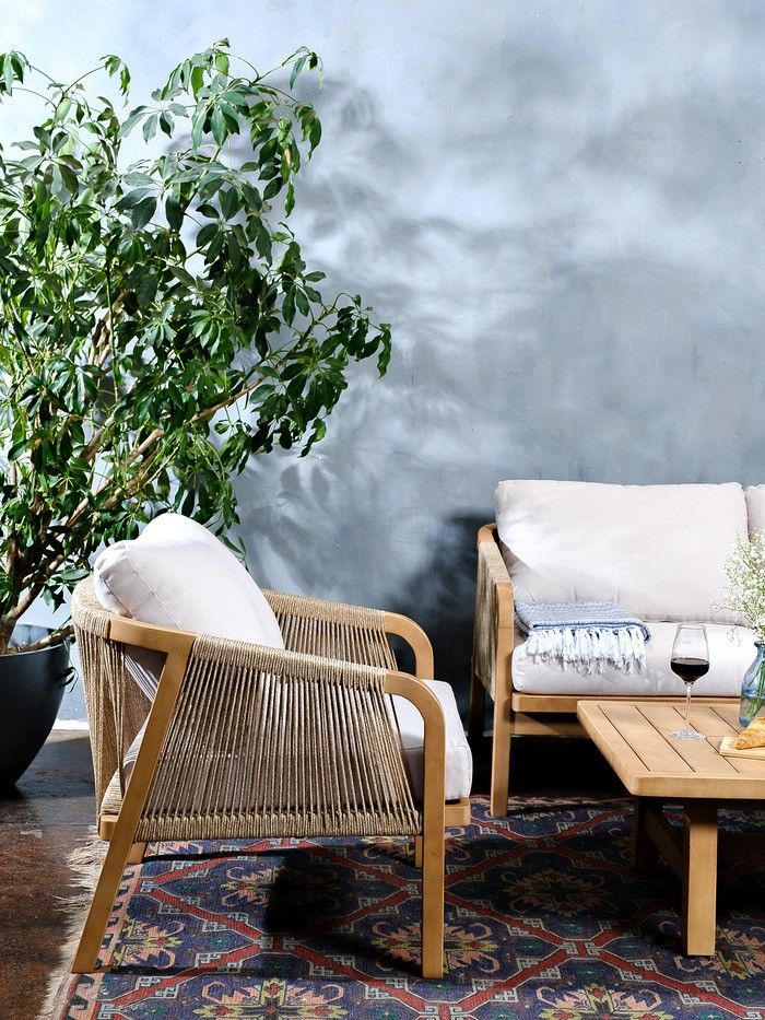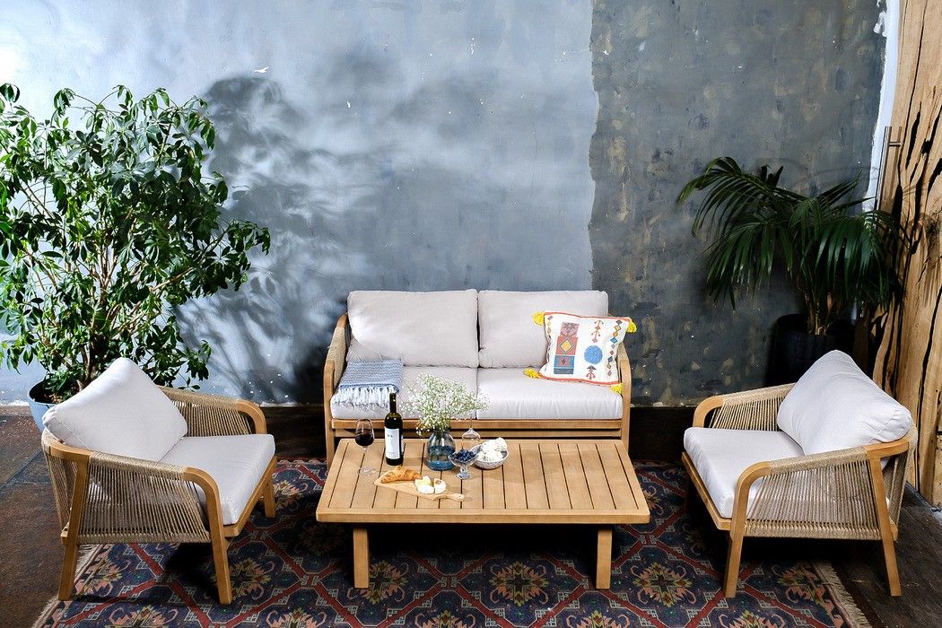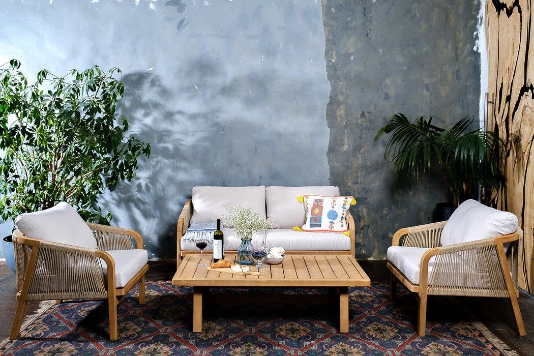 Современная садовая мебель выполненая из массива акации в комбинации с веревочным плетением (rope)
