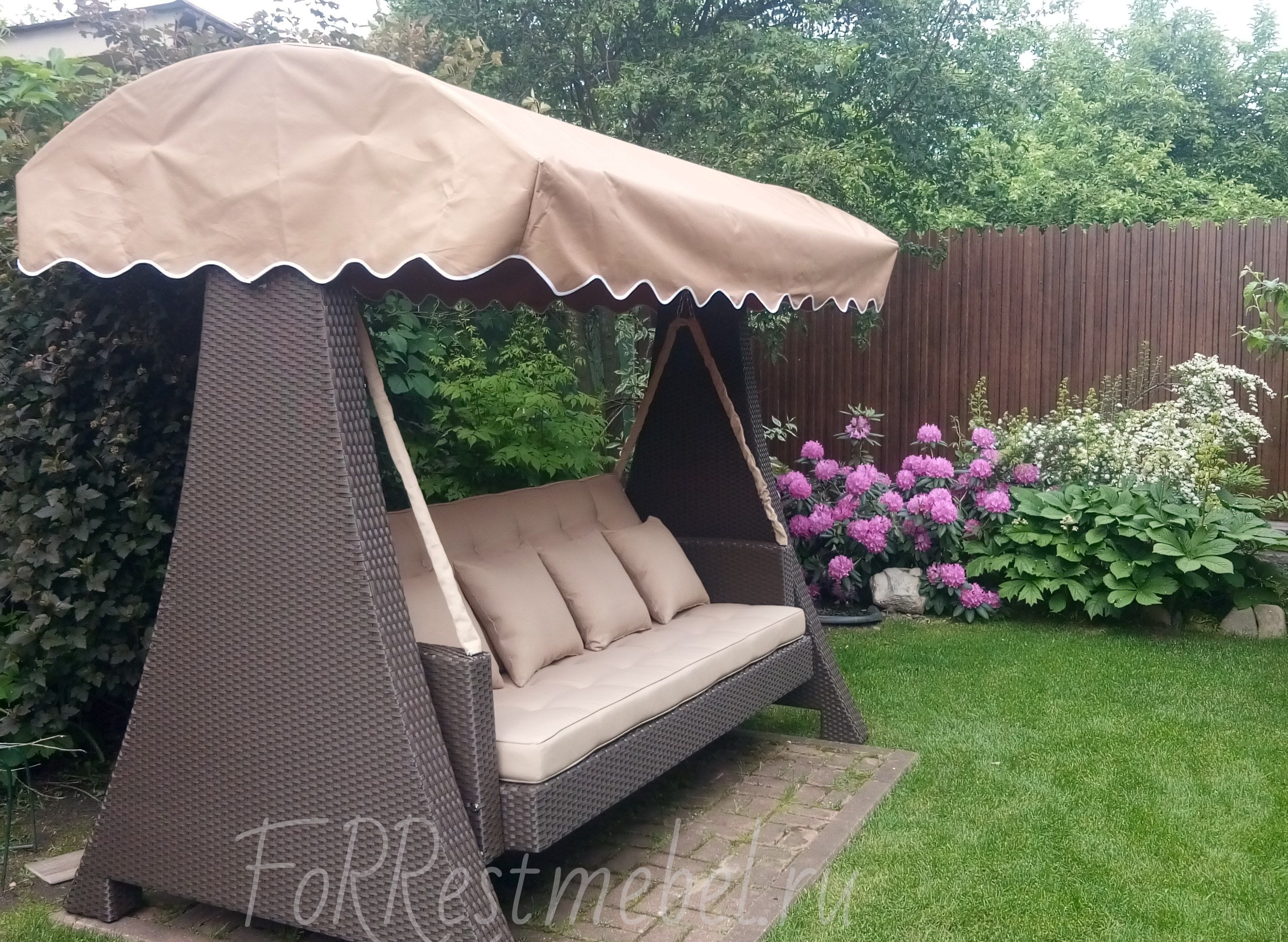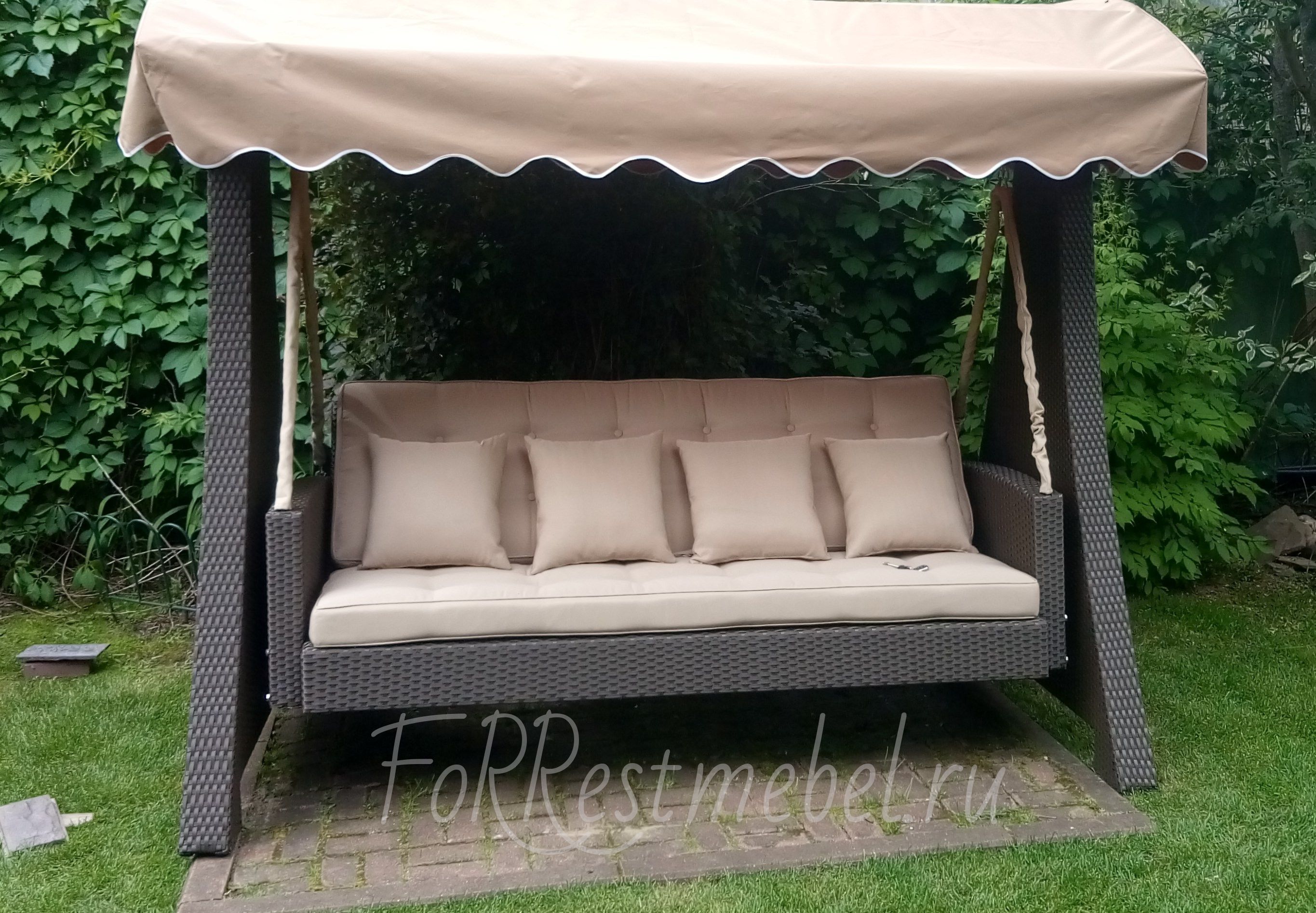Качели выполнены в европейском стиле и представляют собой полноценную лаунж-зону.