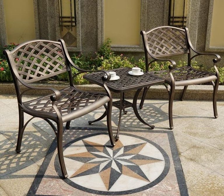 Изящная и практичная садовая мебель на две персоны изготовлена из литого алюминия.