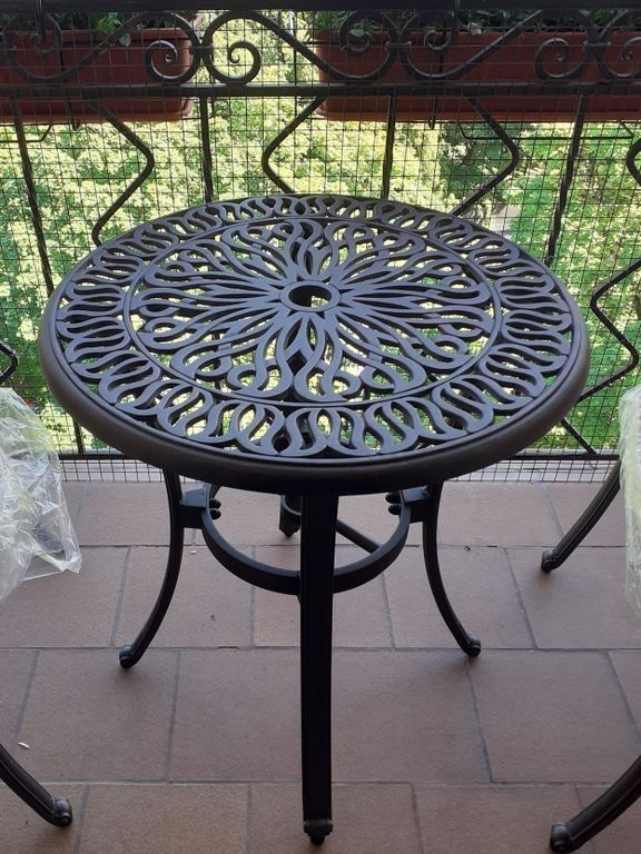 Диаметр62 смВысота73 смОсновной материалЛитой алюминийСтолешницалитой алюминий