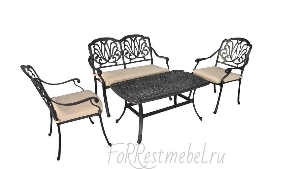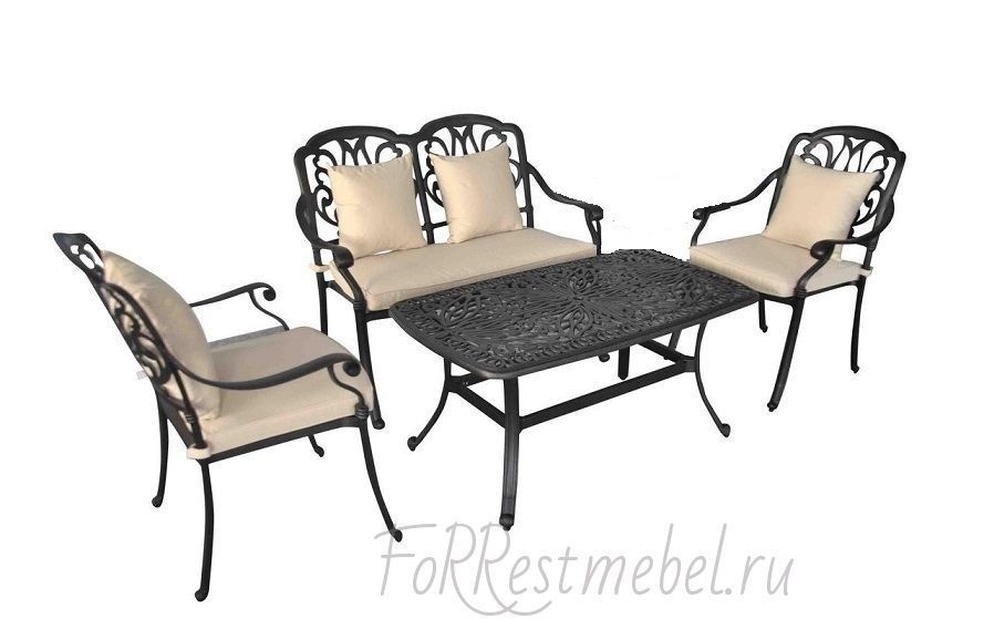 Этот комплект мебели из литого алюминия обладает рядом преимуществ, которые очень важны для садовой мебели.