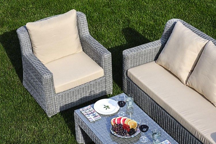 Такой комплект идеально будет смотреться в любом уголке сада, зоны бассейна или на открытой террасе вашего дома.