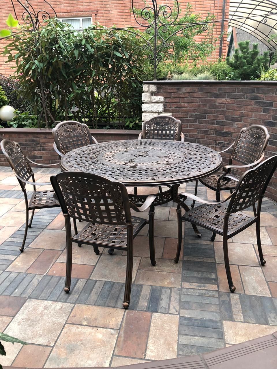 высота стола73 смдиаметр стола150 смширина кресла62 смвысота кресла89 смглубина кресла59.5 смналичие подушекестьцветантичная бронза