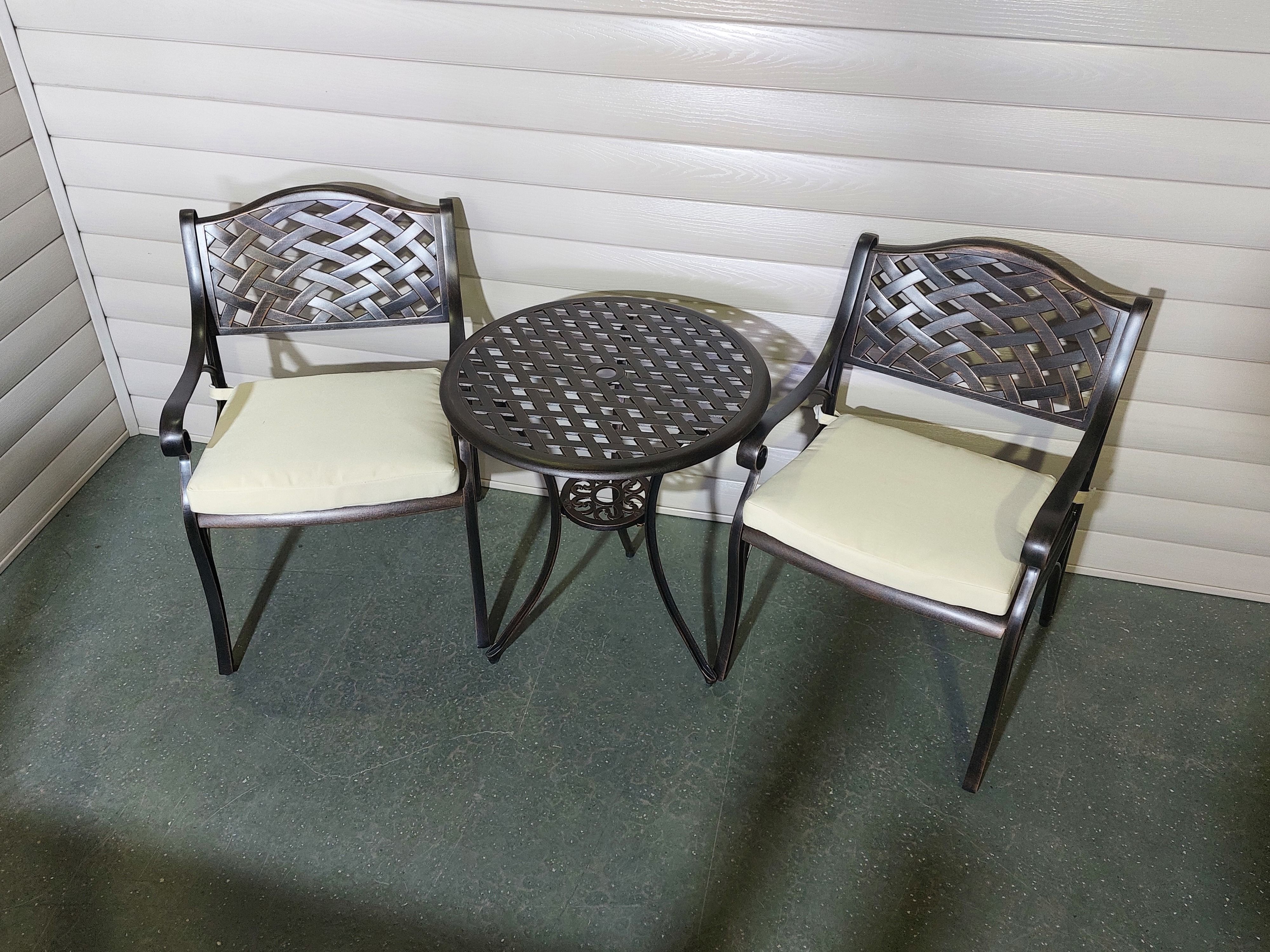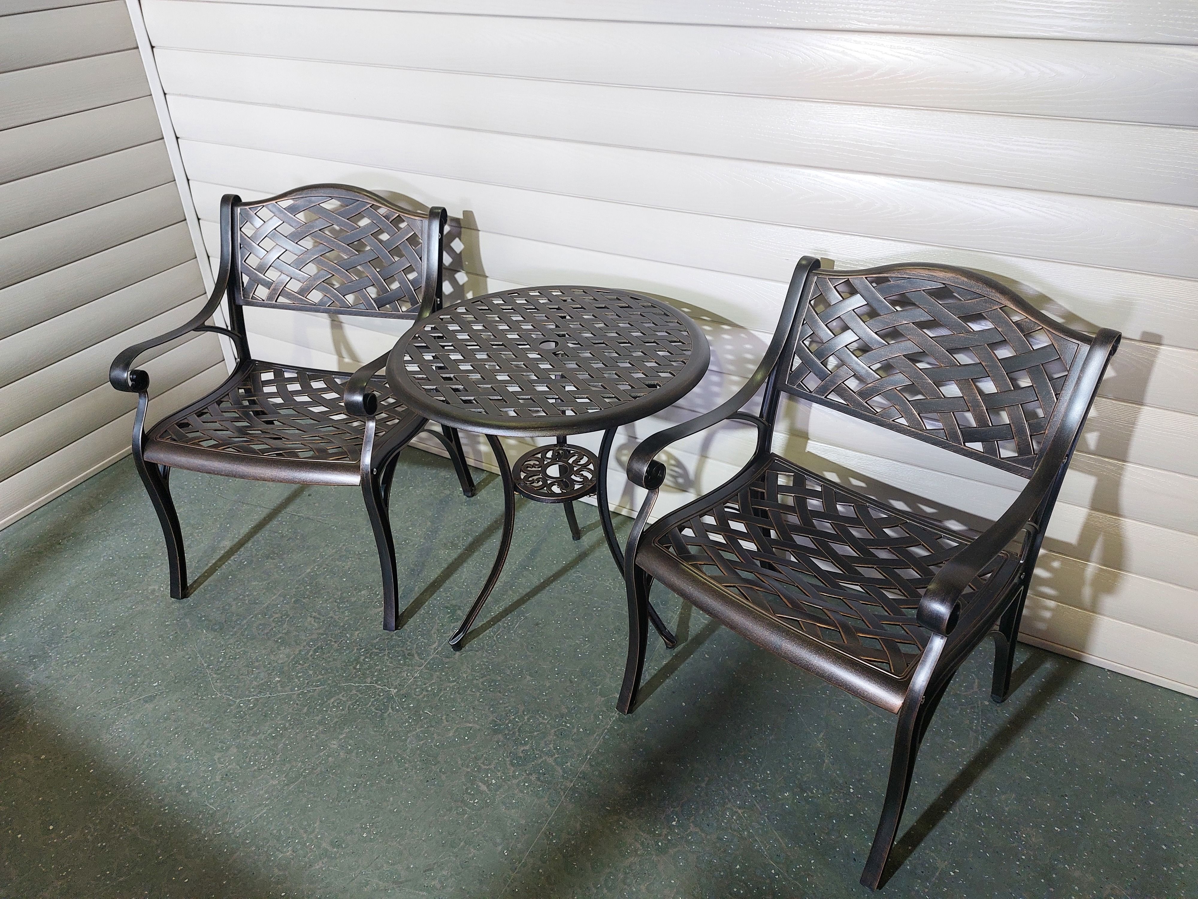 Литая мебель устойчива к осадкам, перепадом темпрератур, коррозии.