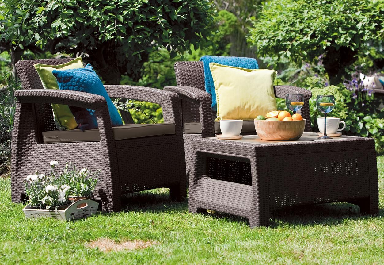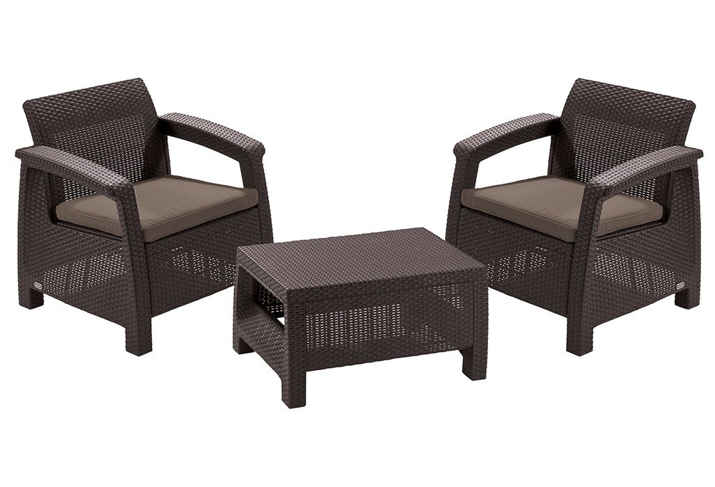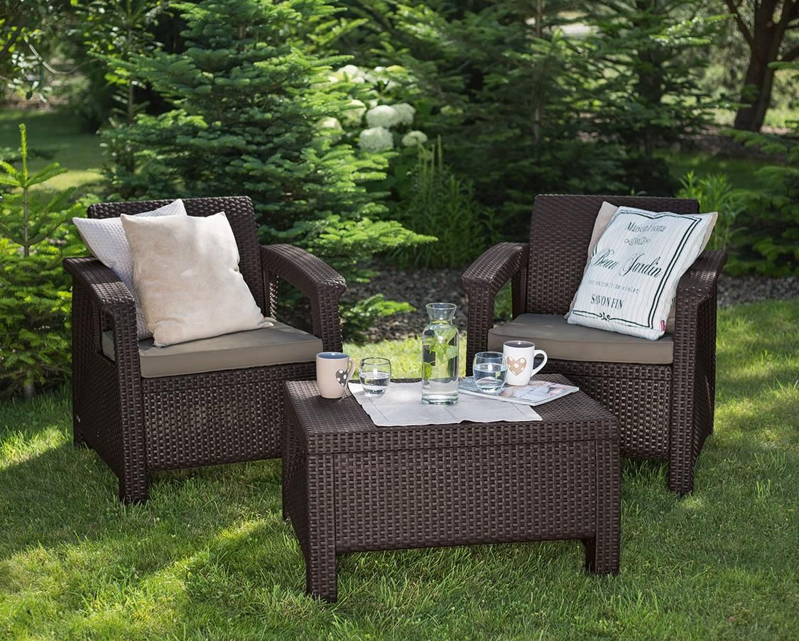 Представляем вашему вниманию стильный и функциональный кофейный комплект мебели из пластика "Корфу Уикенд" коричневого цвета.