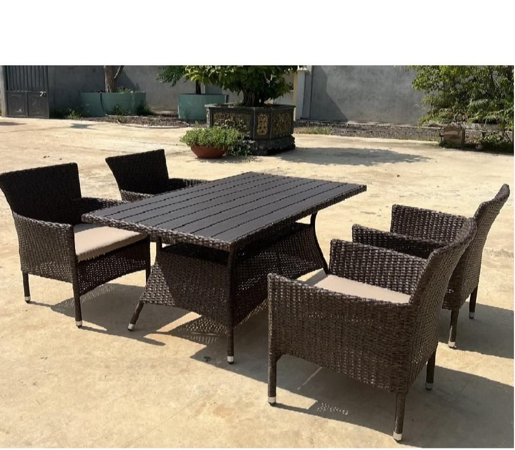 Обеденная группа из искусственного ротанга на четыре персоны.