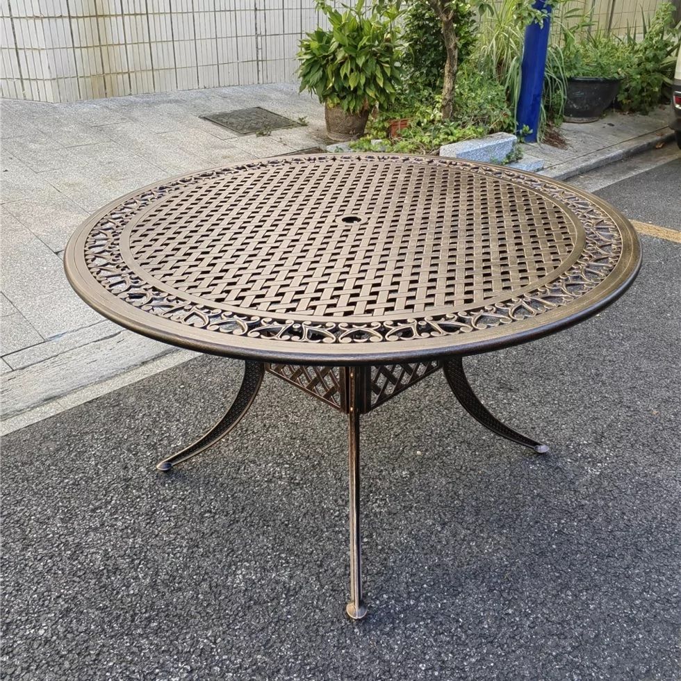 Круглый металлический стол для сада