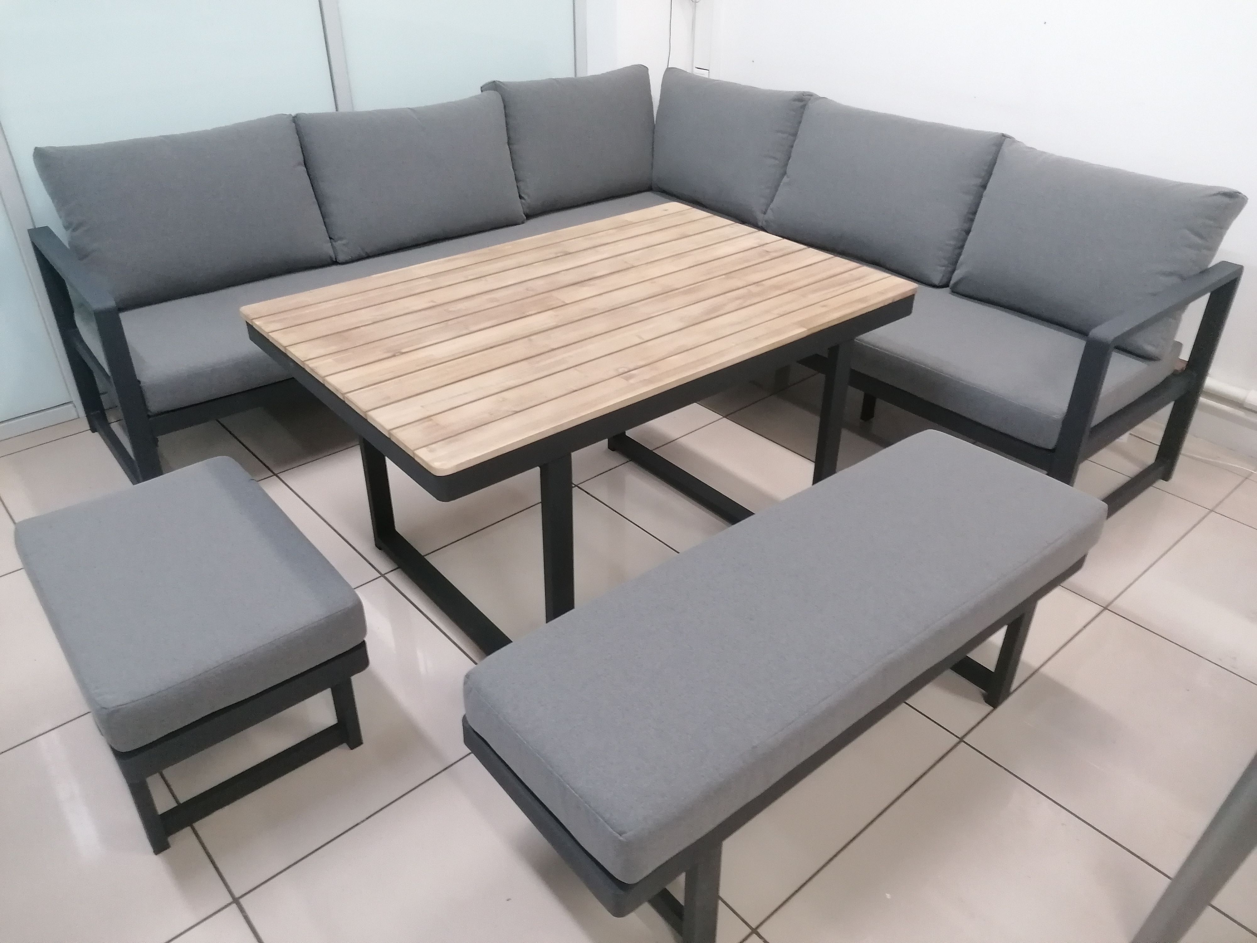 Материалы и цвета: каркас мебели выполнен из всесезонного алюминия с порошковым покрытием темно-серого цвета,