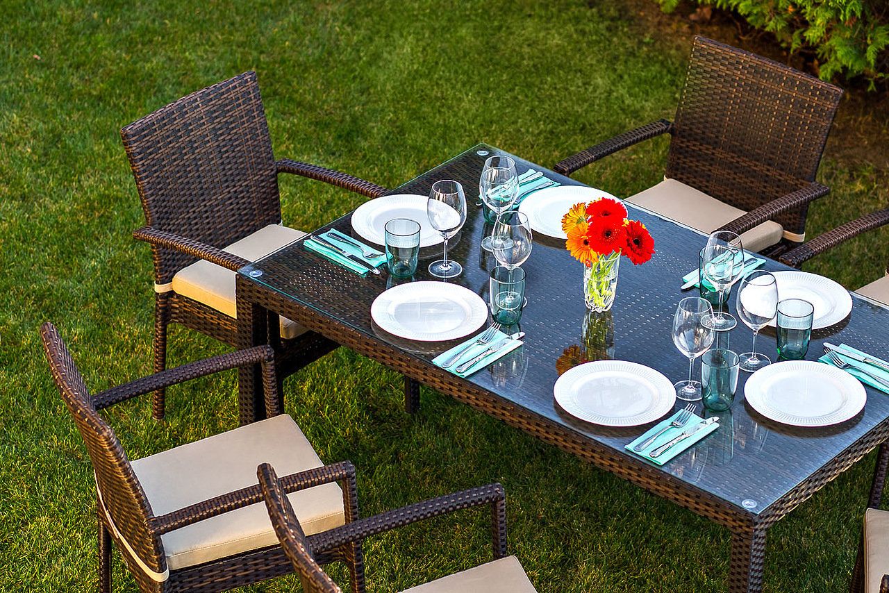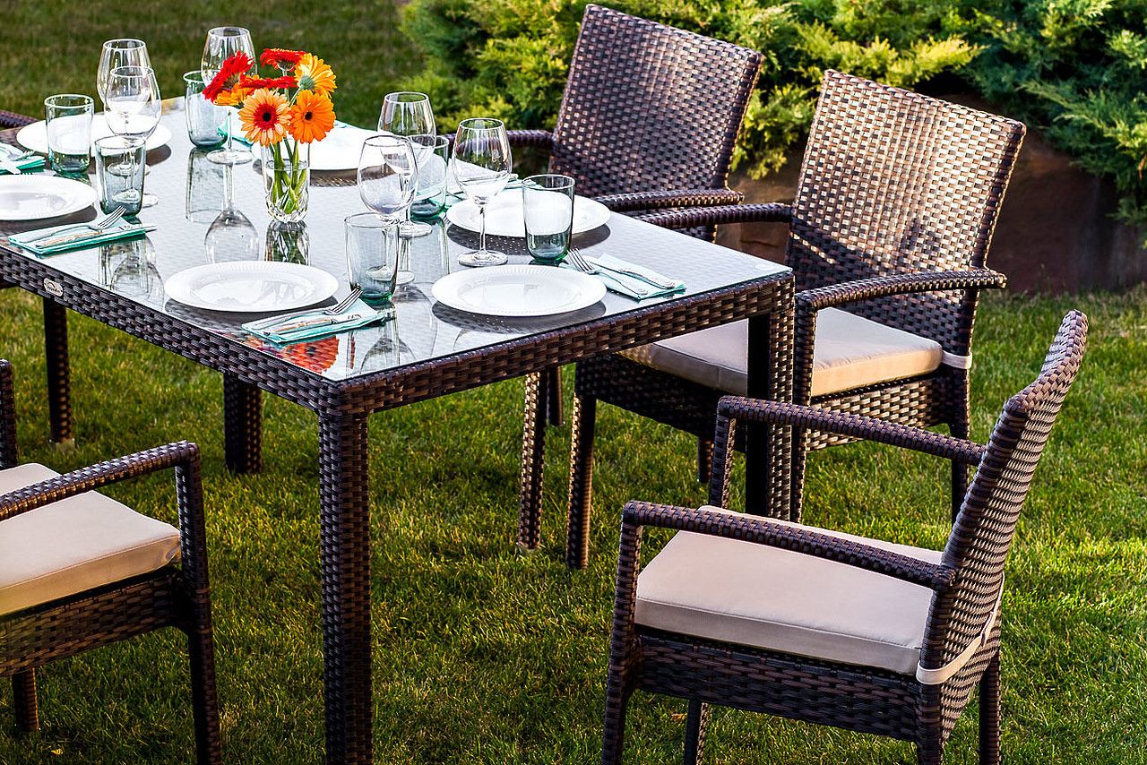 Стол плетеный со столешницей из закаленного стекла 5мм-1шт