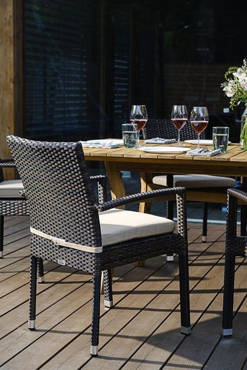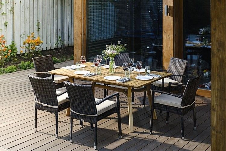 для организации обеденной зоны на открытых площадках вашего загородного дома.