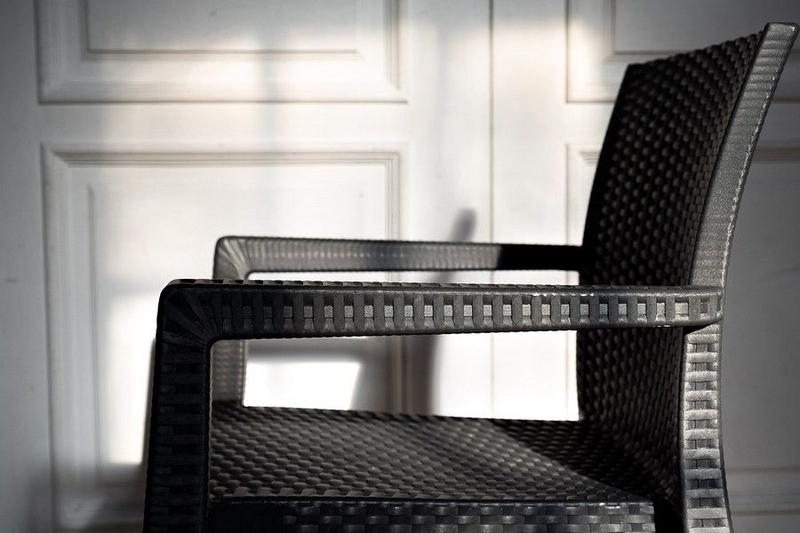 Дизайнерский пластиковый стул с фактурой под искусственный ротанг