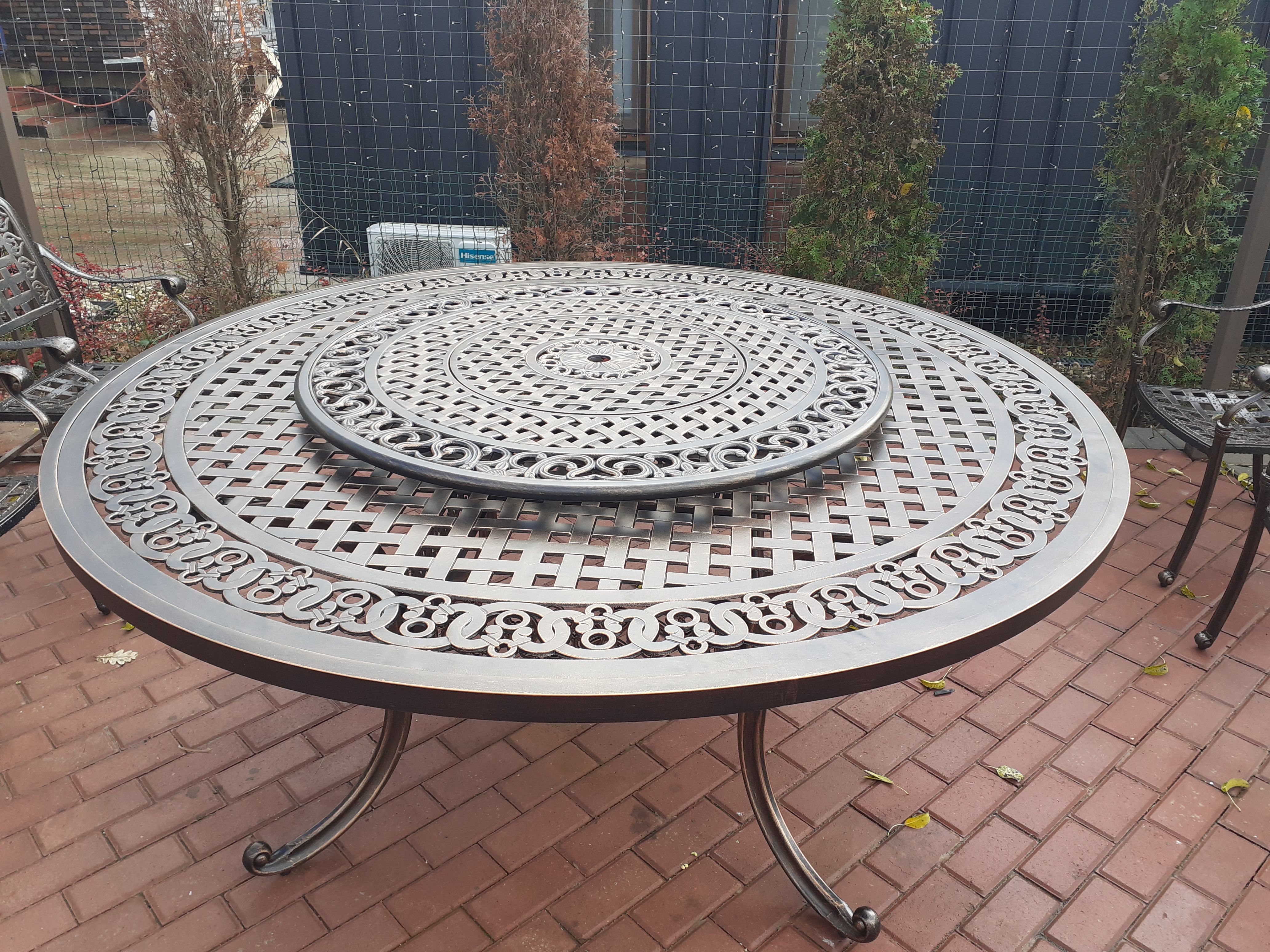 высота стола72 смдиаметр стола180 смширина кресла64 смвысота кресла94 смглубина кресла62 смналичие подушекестьцветантичная бронза