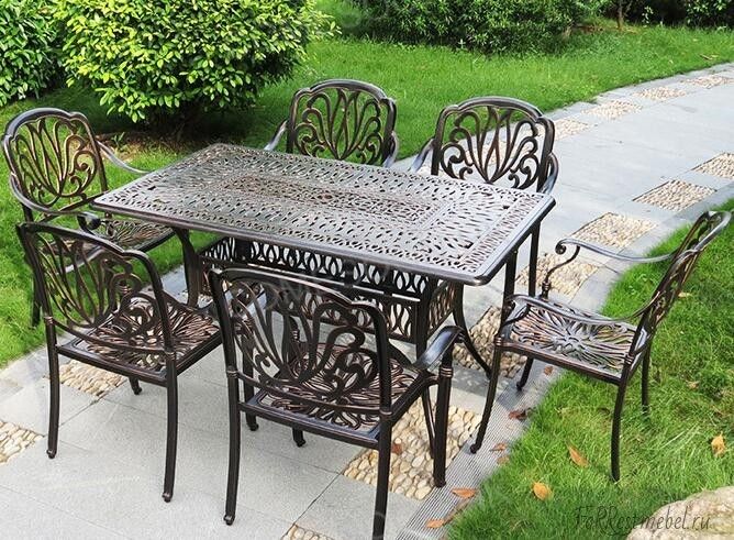 Комплект литой мебели великолепно подойдет для обустройства террас, патио и других открытых пощадок.