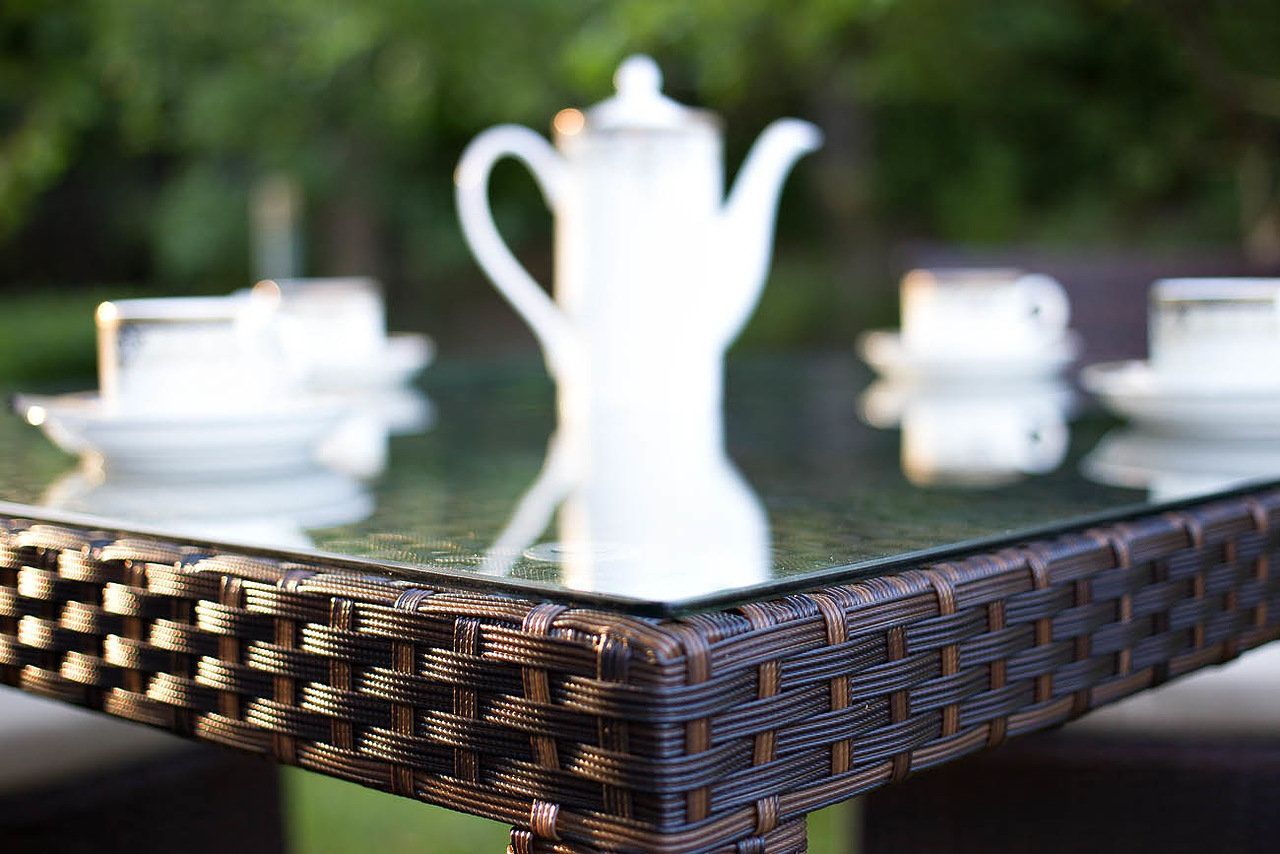 Стол плетеный со столешницей из закаленного стекла 5мм-1шт
