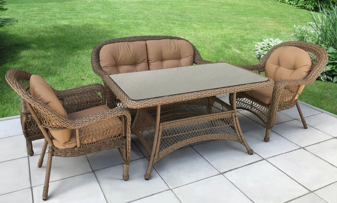 Недорогой комплект из искусственного ротанга на четыре персоны бежевого цвета