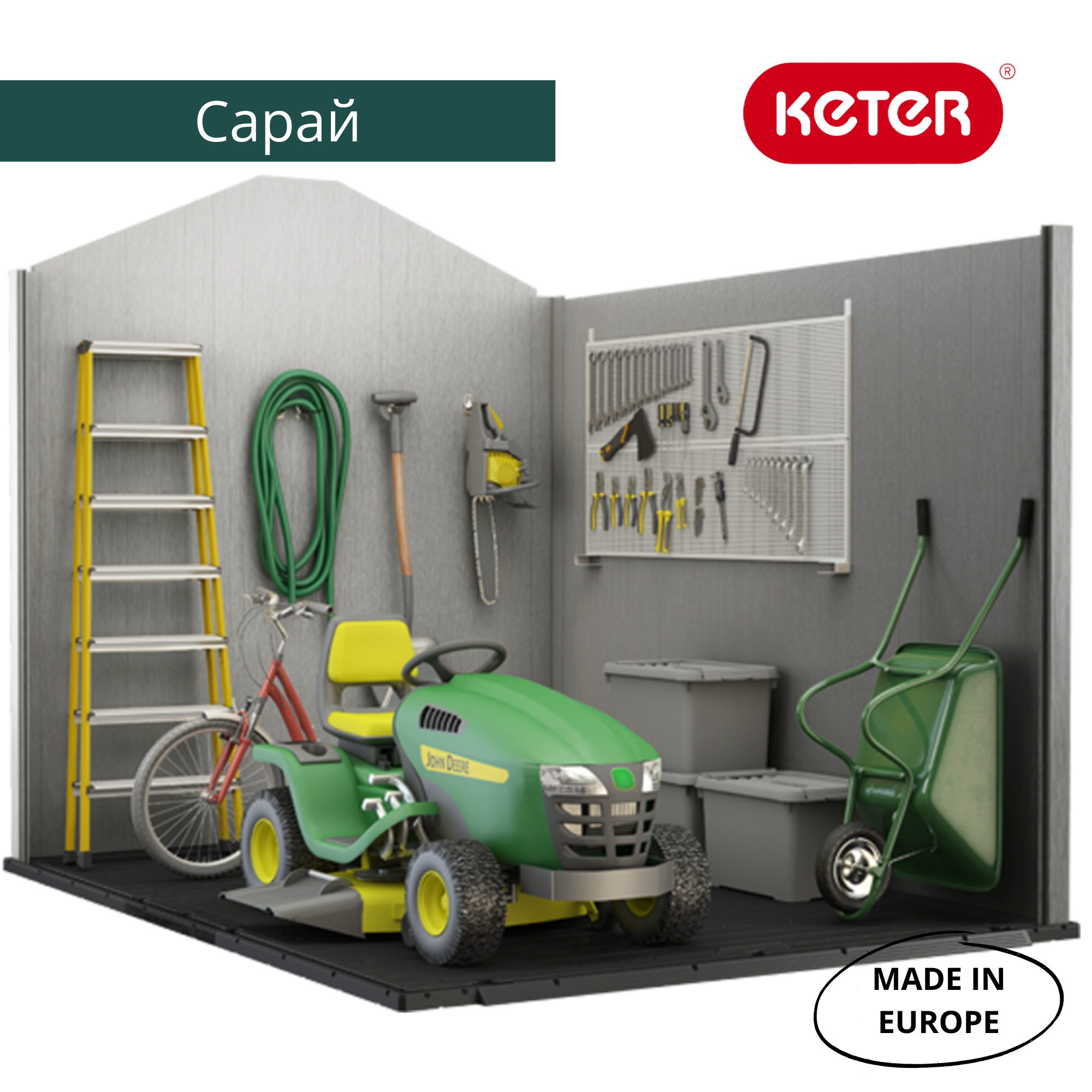 - Сверхпрочные панели пола выдерживают большой вес (газонокосилку, мототехнику).
