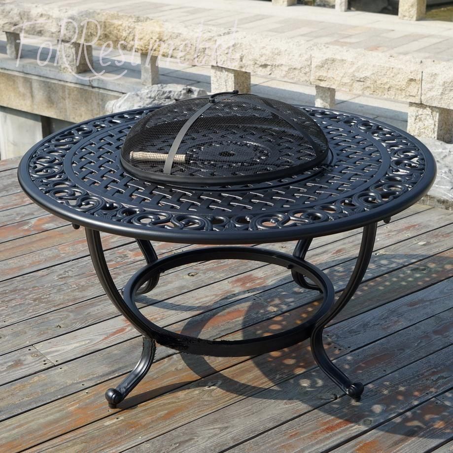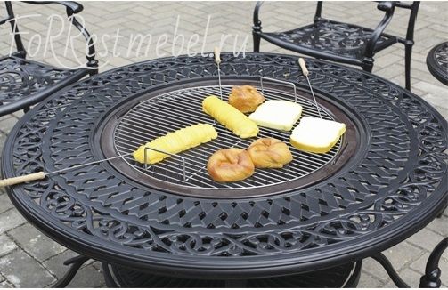 В центре стола находится чаша диаметром 52 см с решеткой для углей.
