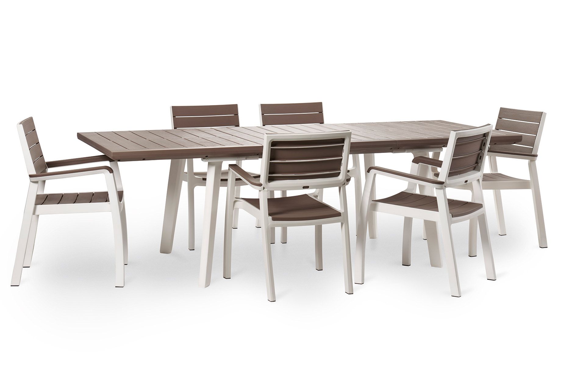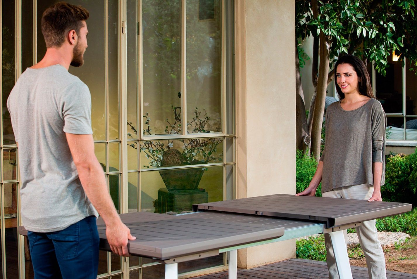 HARMONY EXTEND TABLE – это раскладной стол для специальных заданий. Самый большой в ассортименте, отличается вневременным дизайном и максимальным удобством использования. Уникальная фактура его поверхности напоминает натуральный рисунок древесины. Идеально заполнит большие пространства, такие как сад или терраса, позволяя организовывать семейные торжества или встречи в большом кругу друзей. Благодаря широкой столешнице за столом свободно разместятся 12 взрослых. Изделие отличается высокой прочностью и устойчивостью к воздействию атмосферных факторов и УФ-излучения. Очень легко собирается и чистится.