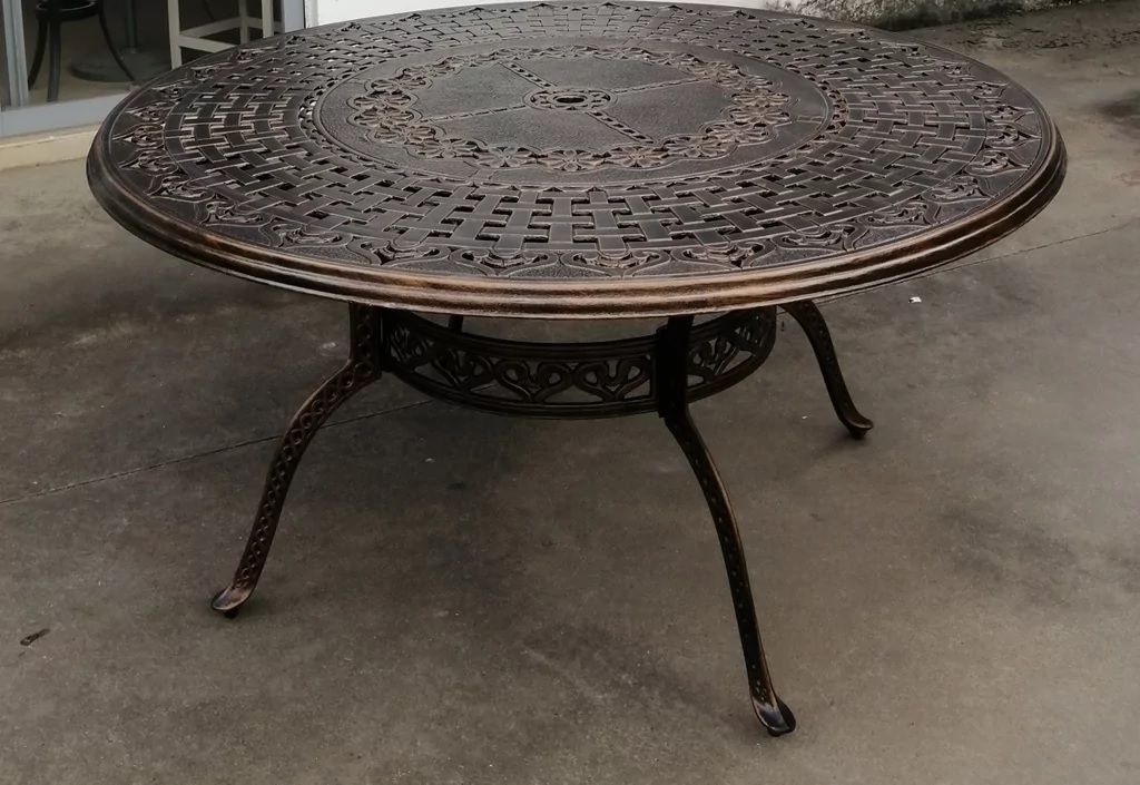 изящный и прочный садовый стол на 6-8 персон изготовлен из алюминиевого сплава.