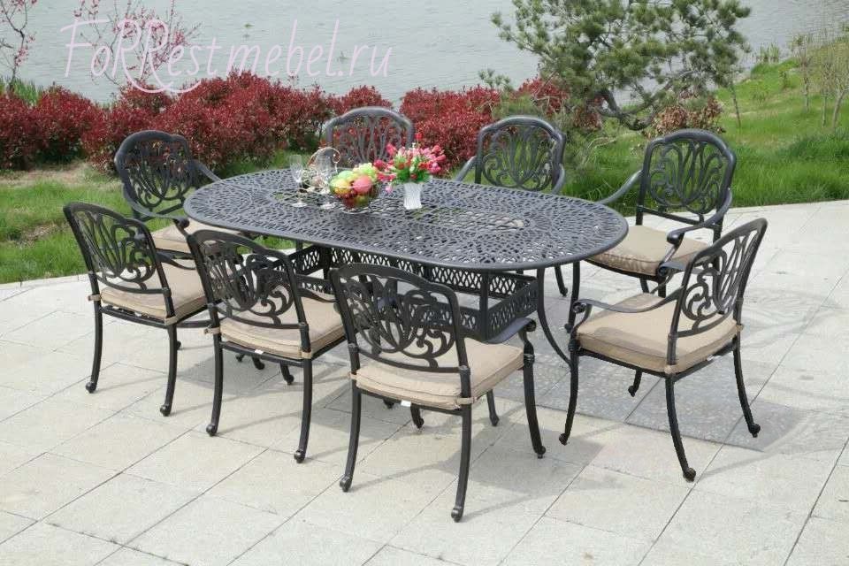 Литой стол из алюминиевого сплава в отличии от аналогичной мебели из чугуна и кованой мебели не подвержен коррозии и ему не страшны перепады температур, а также он не требует специального ухода и хранения.