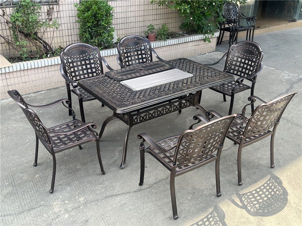 Стол из литого алюминия в отличии от аналогичной мебели из металла или чугуна не боится перепадов температур,
