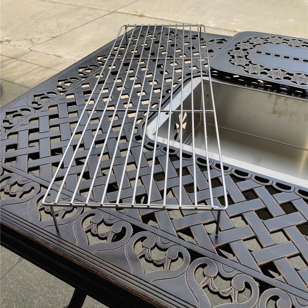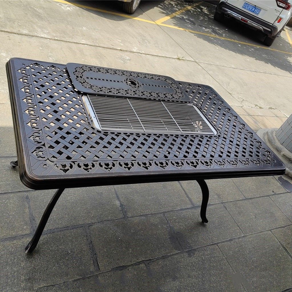 В центре стола находится чаша из нержавеющей стали для приготовления барбекю, при необходимости она закрывается.