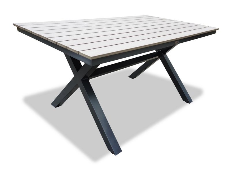 Практичная и удобная обеденная группа на шесть персон с аллюминиевым столом.