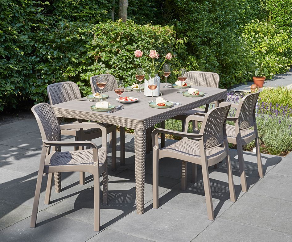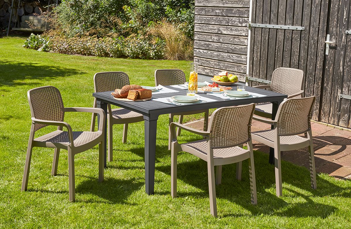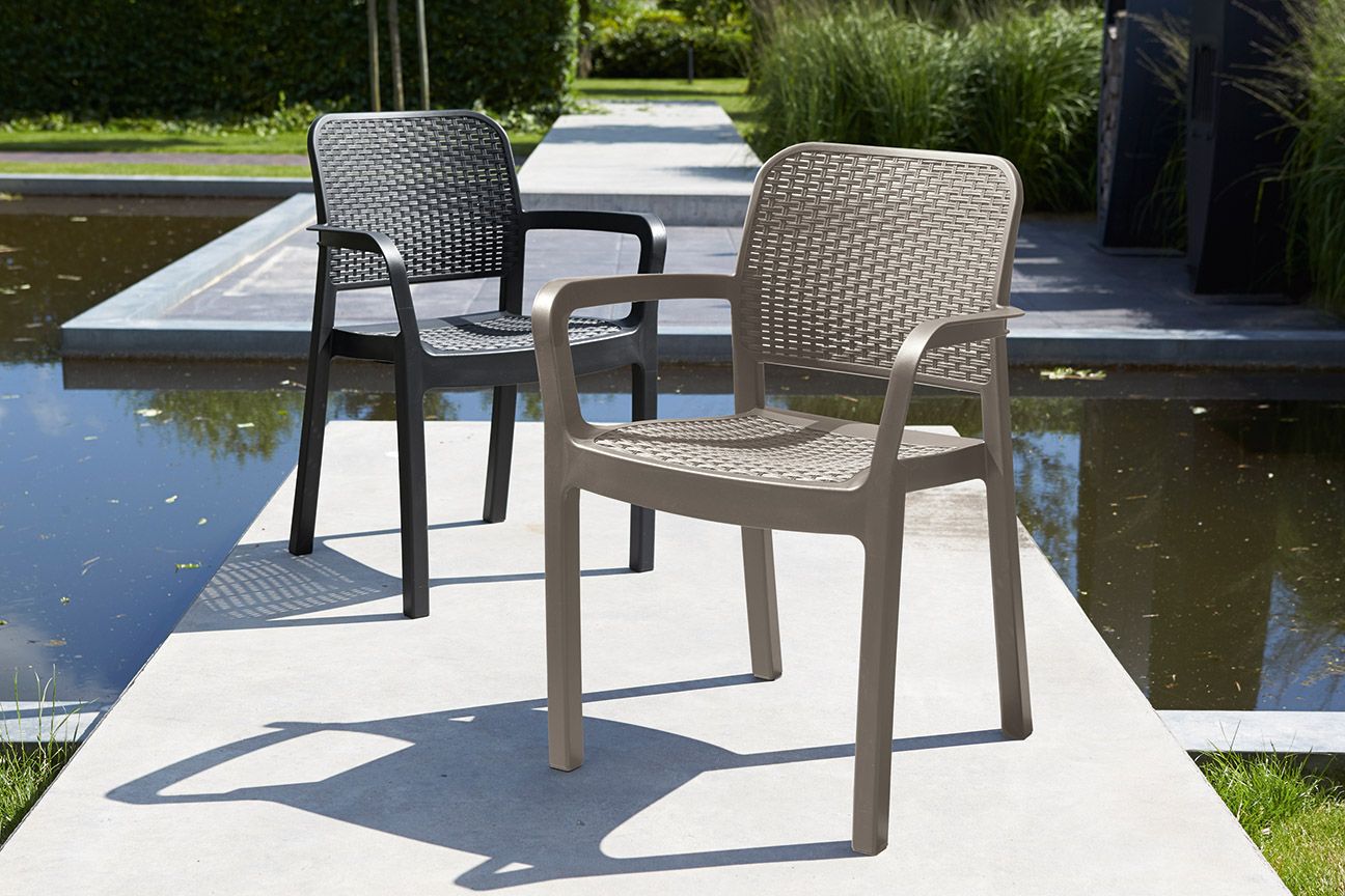 Samanna - это сочетание прочной конструкции и классической элегантности. Удобная, имеющая соответствующую форму спинка с фактурой ротангового плетения, а также устойчивые подлокотники обеспечивают оптимальный комфорт при сидении. Продукт характеризуется прочностью и стойкостью к повреждениям, а также к длительному воздействию атмосферных условий и УФ-лучей. Стул Samanna отлично сочетается с комплектами мебели KETER, представленными на нашем сайте.