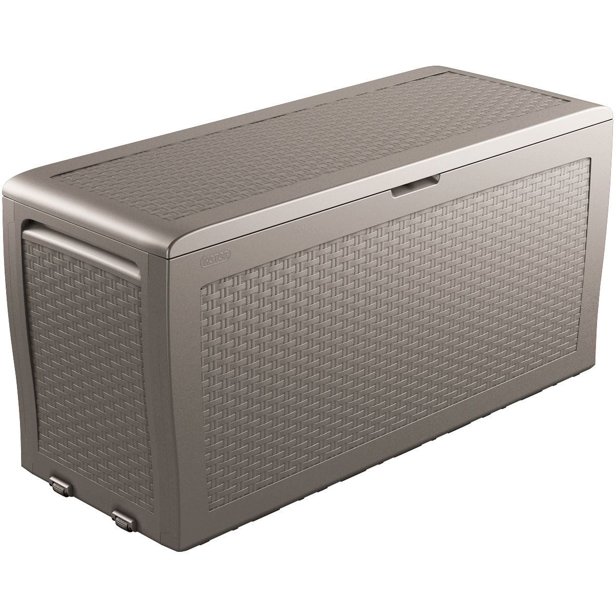 Самоа - превосходный сундук для подушек и садовых аксессуаров. Крепкий и прочный ящик. Полностью устойчив к погодным условиям и ультрафиолетовому излучению. Ящик изготовлен из пластика, поэтому он не нуждается в уходе. Встроенные ручки и ролики упрощают перемещение. Легкий и быстрый монтаж – без помощи инструментов. Закрывается на замок (замок не прилагается). Красивое ротанговое плетение. Эстетичный вид – хорошая цена.