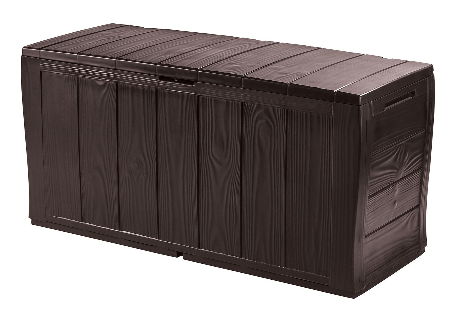 Пластиковый сундук Шервуд стилизован под дерево и имеет необычную форму, что выделяет его среди других сундуков KETER.
