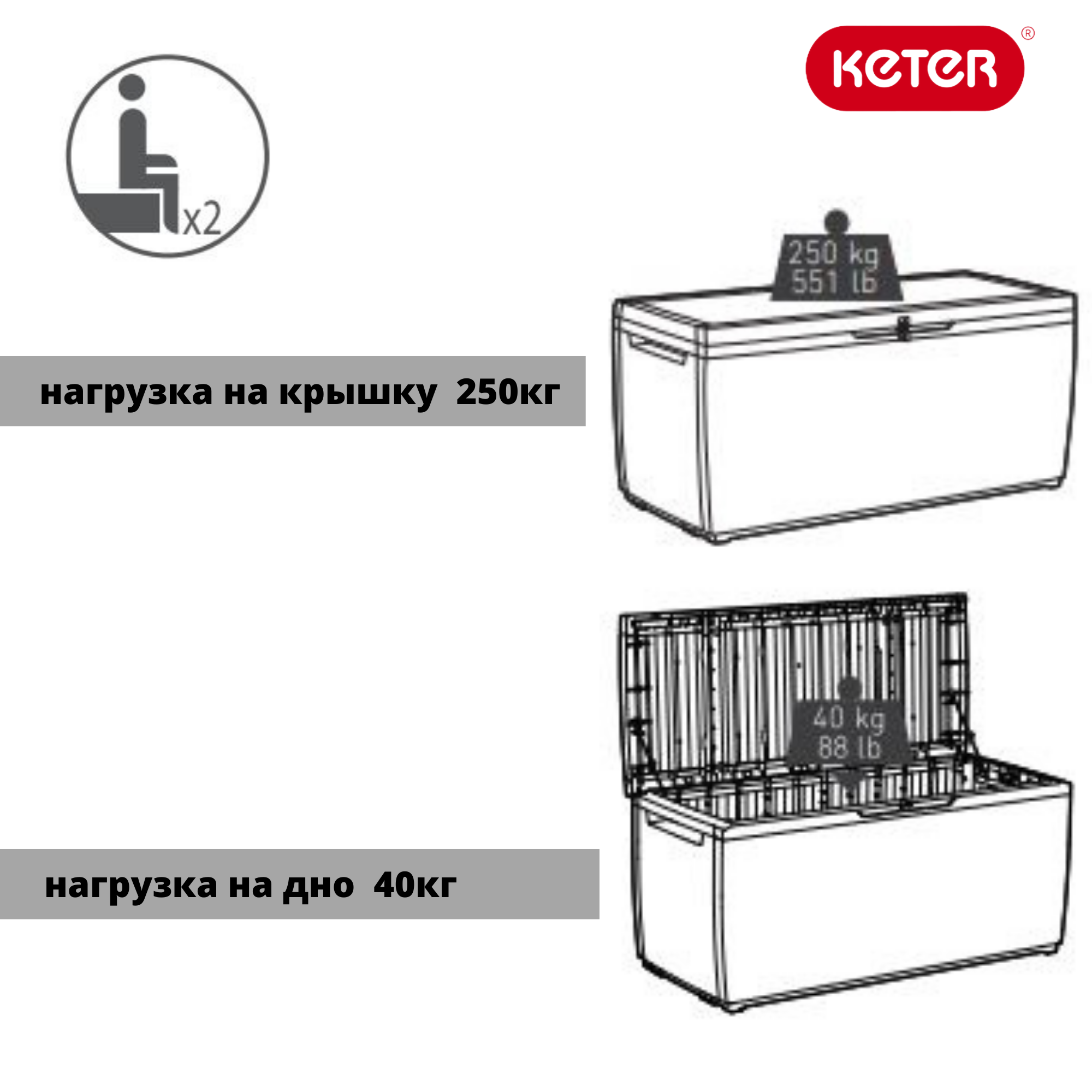 ПроизводительKETERВысота57 смШирина123 смГлубина53.5 см