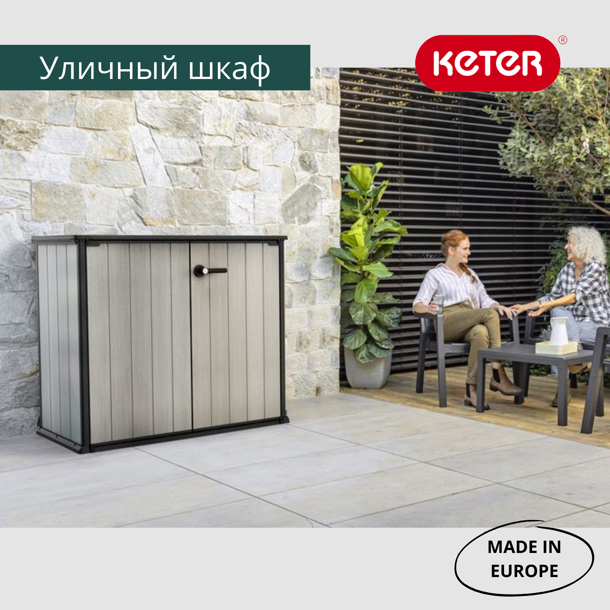 Ящик-шкаф Patio Store имеет простой и элегантный дизайн, цвет и текстуру поверхности напоминающую натуральную древесину. Ящик будет незаменим всюду, где необходимо организованное хранение садовых принадлежностей и прочих бытовых предметов. Прочная конструкция защищает хранимые предметы от влаги и ветра. Изготовленный из высококачественного полипропилена ящик-шкаф Patio Store прослужит десятки лет, а ещё его можно покрасить в любой цвет.